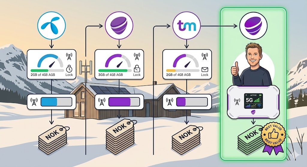 Selvom vi fokuserer på mobilt bredbånd priser hos ice.no, er det relevant at se på, hvordan de klarer sig mod Telenor og Telia. Generelt set ligger Ice lavere i pris på de store datapakker, mens dækningen i de dybe dale og på de højeste fjelde stadig kan være marginalt bedre hos Telenor. Dog har Ice indhentet meget af det forsømte, og for 99 % af befolkningen vil der ikke være mærkbar forskel i daglig dækning. Konkurrencen har ført til, at alle udbydere har måttet fjerne de mest restriktive vilkår, hvilket har gavnet forbrugerne over hele linjen.